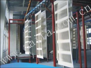 工藝流程粉末靜電噴涂線主要包含以下工藝流程:1、前處理(除油、除銹、磷化);2、靜電噴涂;3、高溫固化(根據噴涂塑粉成分的不同和要求厚度的不同,固化溫度通常為160-210度);4、出爐冷卻。